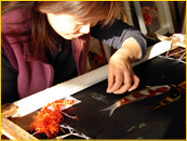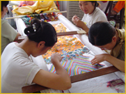 Gu's Embroidery workshop has almost one hundred embroiderers, some of them follow the tradition by stitching at their homes .Many of them are Su's Arts Masters. 80% of them are educated from generation, and 30% are between 40 to 60 years old. They skillfully stitch at random ,flatting or gold wire way. |