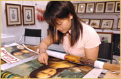 From 2000, she stitched the copy of western oil paintings such as Kiss, Mona Lisa .And these products are collected by the Customers